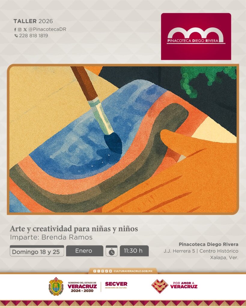 Xalapa, Ver., viernes 09 de enero de 2026.- La Secretaría de Cultura de Veracruz invita al público a asistir a los talleres artísticos durante enero en la Pinacoteca Diego Rivera, enfocados en el desarrollo de la creatividad, la expresión artística y el aprendizaje de técnicas fundamentales de las artes visuales. El cupo es limitado.