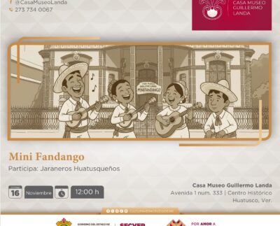 Xalapa, Ver., viernes 14 de noviembre de 2025.- La Secretaría de Cultura de Veracruz (SECVER) invita a asistir al Mini fandango,…