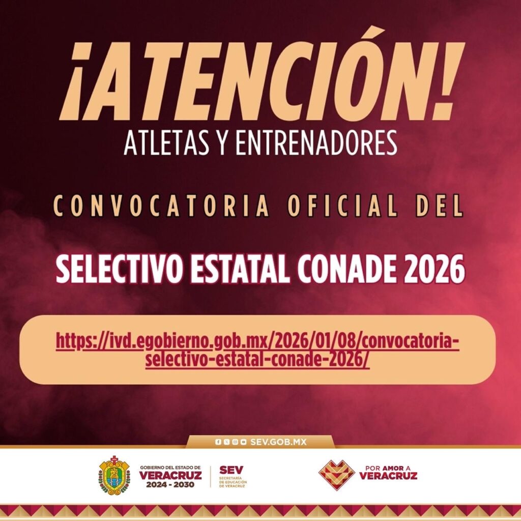 Boca del Río, Ver., viernes 09 de enero de 2026.- El Instituto Veracruzano del Deporte (IVD), a través del Sistema Estatal de Cultura Física y Deporte de Veracruz, convoca a participar en el Selectivo Estatal rumbo a la Olimpiada Nacional CONADE 2026.