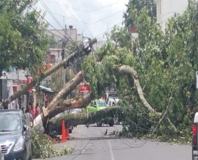 -Dos vehículos y una moto las afectadas por caída de ramas-Xalapa, Ver.-Un árbol grande cayó sobre la calle Mártires 28…