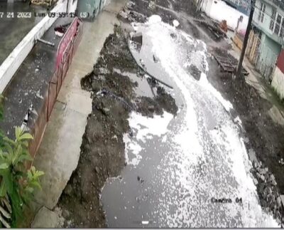 Escurrimientos de espuma blanca alerta a vecinos de Rafael Lucio en Xalapa