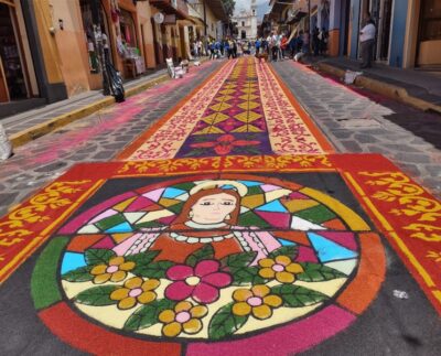 En Xico, colocan alfombra de aserrín en honor a María Magdalena