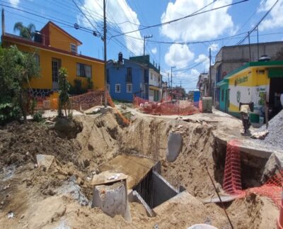 Casas y banquetas afectadas por construcción de colector pluvial en colonia de Xalapa