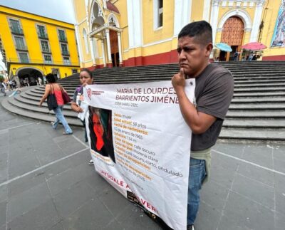 Paco De Luna /Xalapa, Ver.-Los familiares de María de Lourdes Barrientos Jiménez se manifestaron en la plaza Sebastián Lerdo de…