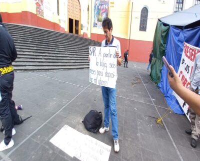 Profesor exige le paguen fondo de ahorros; protesta en Xalapa