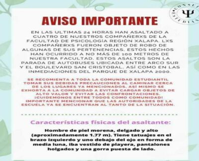 *Por asaltos en la facultad de Psicología XALAPA, VER.- Debido a que en las últimas semanas han asaltado a cuatro…
