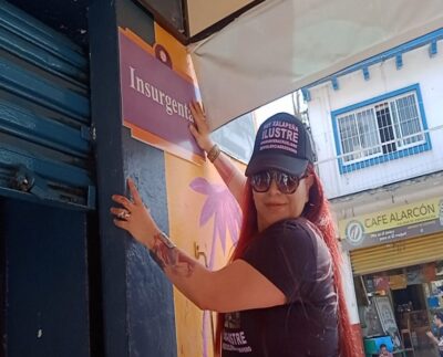 -La nomenclatura dice “Insurgentas”-Xalapa, Ver.-La activista Wendy López Hernández realizó el cambio simbólico de la calle Insurgentes por “Insurgentas”, en…