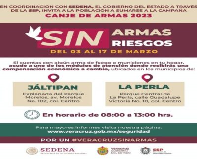 *En La Perla y Jáltipan XALAPA, VER.- El gobernador Cuitláhuac García Jiménez, anunció el programa de canje de armas en…