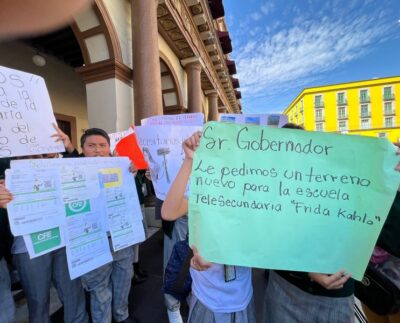 Paco De Luna /Xalapa, Ver.-Estudiantes de la escuela Telesecundaria “Frida Khalo” se manifestaron en el Palacio de Gobierno de Veracruz…