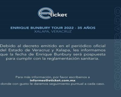 XALAPA, VER.- El concierto del cantante español, Enrique Bunbury, programado para el 1 de febrero quedó cancelado por la pandemia…