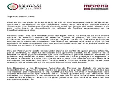 Respaldan diputados federales de Morena a Cuitláhuac, en Veracruz ‘no hay persecución’