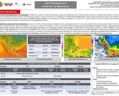 Activa Protección Civil Alerta Gris por posibles efectos del sistema frontal. Xalapa, Ver., sábado 08 de noviembre de 2025.- En seguimiento…