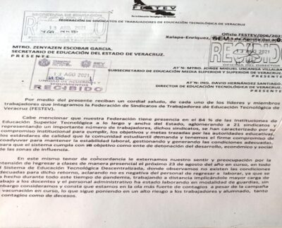 Francisco De Luna /Xalapa, Ver.-Por el anuncio del regreso a clases presenciales, la comunidad estudiantil se arriesgaría a contagios masivos…