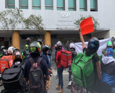 Motociclistas repartidores, se manifiestan