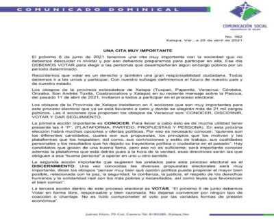 XALAPA, VER.- La Arquidiócesis de Xalapa pidió a los ciudadanos votar este próximo 6 de junio de manera libre, responsable…