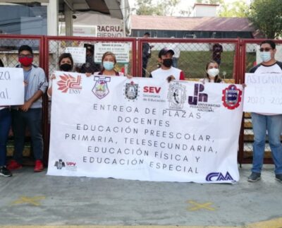 Francisco De Luna / Xalapa, Ver.-Los normalistas egresados que exigen plazas magisteriales, se manifestaron en la Secretaría de Educación de…