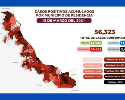 Suman 56 mil 323 casos positivos a Covid19 en el Estado