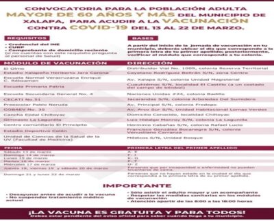 Javier Laertes/ Este sábado 13 de marzo inicia el periodo de vacunación contra el COVID-19 en Xalapa, donde la Secretaría…