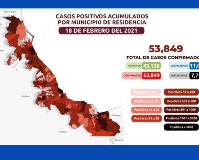 Al corte de este jueves suman 53 mil 849 los casos positivos de COVID-19