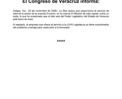 Xalapa, Ver., 23 de noviembre de 2025.- La fibra óptica que proporciona el servicio de internet al sector de la…