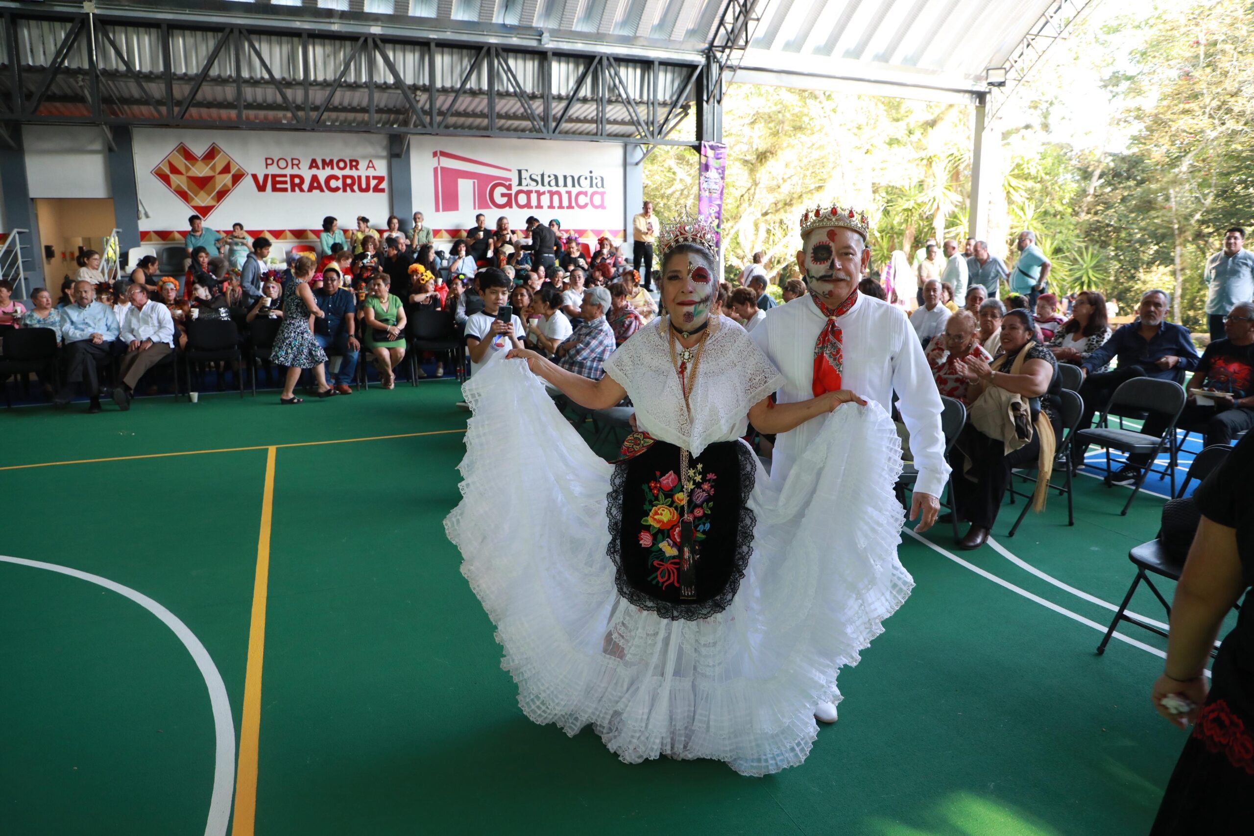 Xalapa, Ver., martes 28 de octubre de 2025.- En el marco del cuarto Festival de Día de Muertos de la Estancia Garnica, el Instituto de Pensiones del Estado (IPE) inauguró el techado de la cancha principal, espacio destinado a talleres, actividades recreativas y deportivas para las y los pensionados veracruzanos.