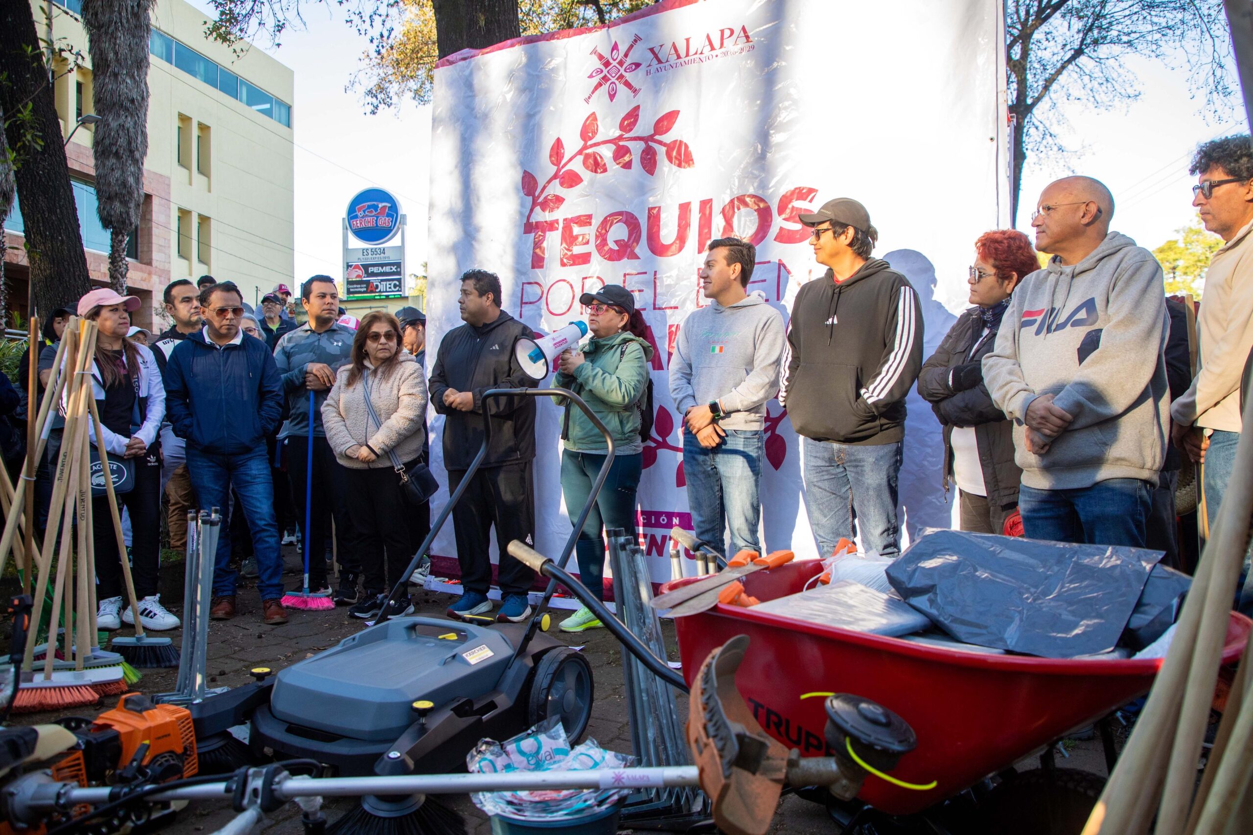 Xalapa, Ver., 8 de febrero de 2026.- Como parte de una estrategia permanente para la recuperación, conservación y dignificación de los espacios públicos, el Ayuntamiento de Xalapa llevó a cabo una nueva jornada de los Tequios por el Bien de Xalapa, encabezada por la Alcaldesa, Lic. Daniela Griego Ceballos, acompañada por el Síndico Único, Dr. Marco Aurelio Martínez Sánchez; la Regidora Primera, Lic. Julieta Aguilar Ortega; el Secretario del Ayuntamiento, Mtro. Víctor Hugo Meza Cruz; titulares y personal de las distintas áreas de la administración municipal, bajo la organización de la Dirección de Juventud, a cargo del Lic. Rafael Alarcón Barrientos.