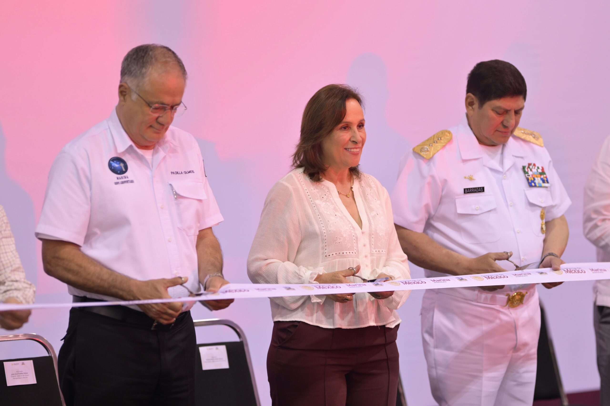 Explicó que EXPOMAR, abierta del 20 al 25 de noviembre, es un espacio diseñado para acercar a las familias mexicanas al ser y quehacer de la Armada de México, mostrando su presencia permanente en el mar, aire y tierra, así como su labor diaria en búsqueda y rescate, atención médica, protección civil y operaciones del Plan Marina.