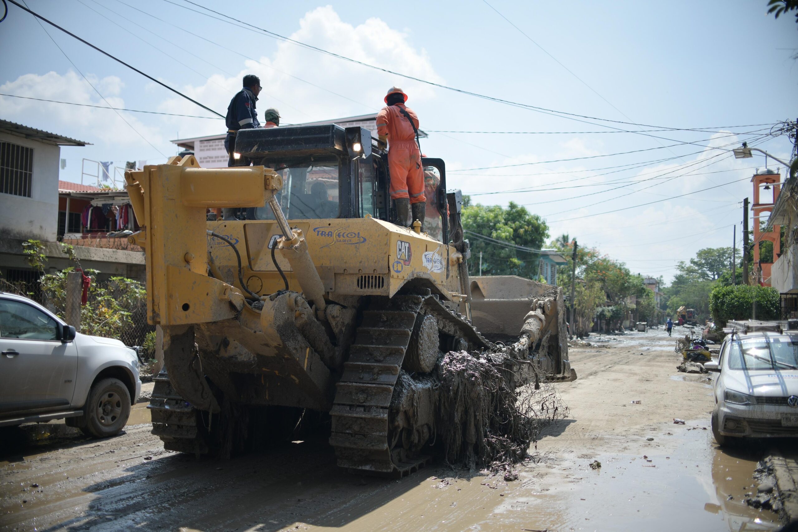 De manera simultánea, se ejecuta la limpieza de calles, desazolve del sistema de alcantarillado y el suministro de combustible para mantener operativa la maquinaria pesada; además, se apoya con el traslado de kits de limpieza, despensas y herramientas a las brigadas y comunidades afectadas.