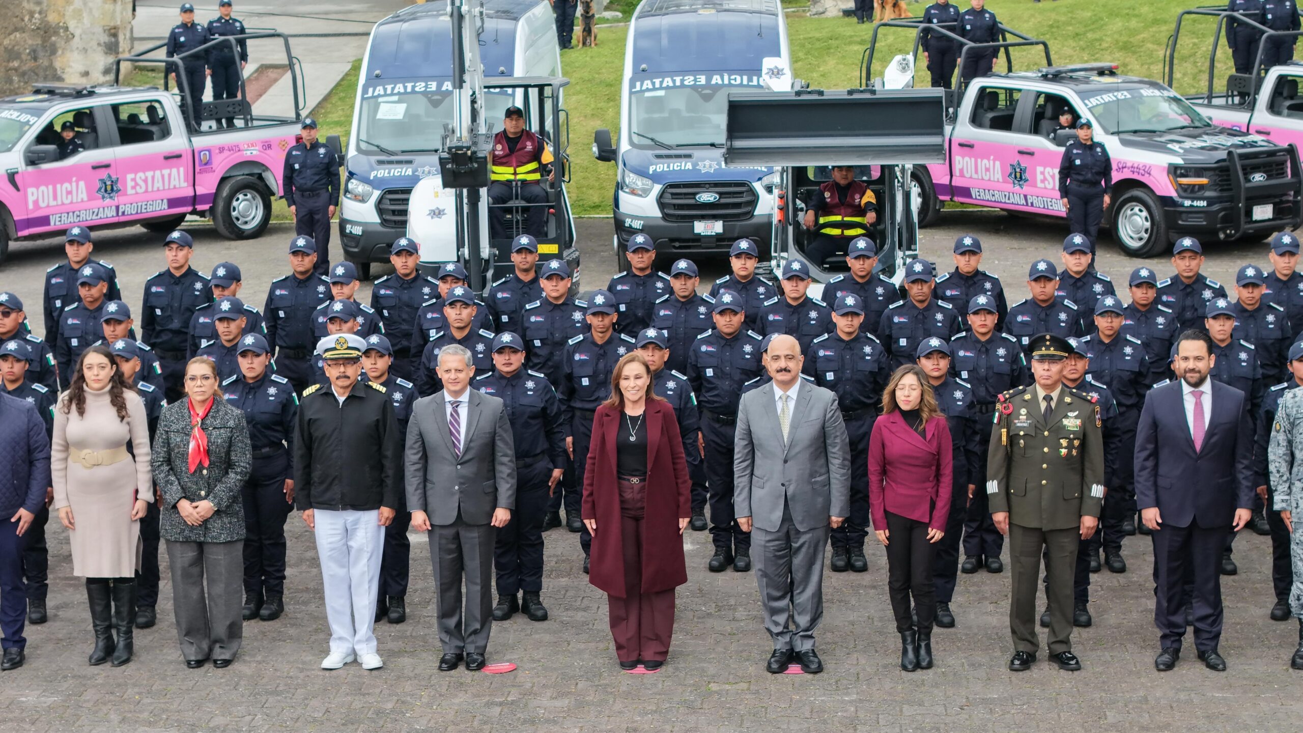 En el marco de la ceremonia, se entregó equipamiento y vehículos para reforzar las capacidades operativas y de respuesta inmediata, consistentes en 378 chalecos balísticos, 609 cascos balísticos, 765 esposas, 94 grilletes, 343 equipos de gas pimienta y toletes PR-24, así como unidades para el programa Veracruzana Protegida, dos camionetas tipo van para la unidad K9 y dos vehículos de trabajo tipo Bobcat.