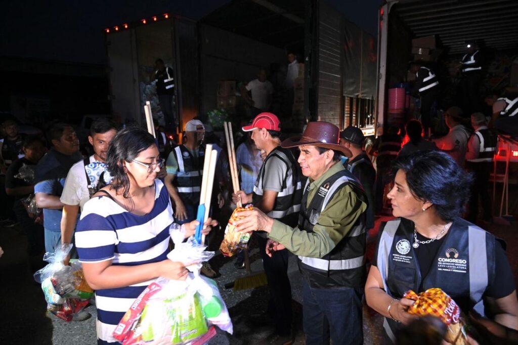 Xalapa, Ver., 20 de octubre de 2025.- Más de 10 mil despensas, siete mil kits de limpieza, y mil tinacos entregaron diputadas y diputados locales en los municipios de Coatzintla y Poza Rica, donde se sumaron a los trabajos de limpieza, remoción de escombros, descarga y entrega de apoyos a las personas damnificadas por las recientes lluvias.