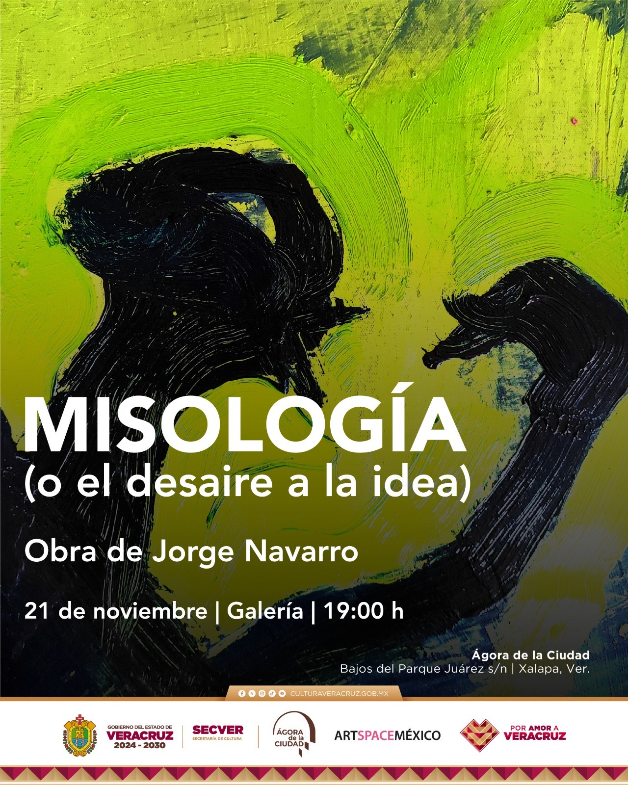 Xalapa, Ver., martes 18 de noviembre de 2025.- La Secretaría de Cultura de Veracruz (SECVER) invita a la inauguración de exposición Misología (o el desaire a la idea) de Jorge Navarro, que se llevará a cabo el viernes 21 del presente mes a las 19:00 horas, en la Galería del Ágora de la Ciudad.