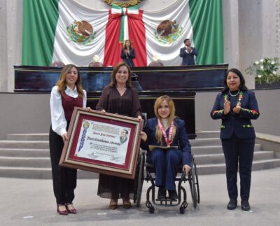 • En Sesión Solemne, la atleta paralímpica veracruzana recibe la medalla y el diploma por su ardua labor, liderazgo incluyente…