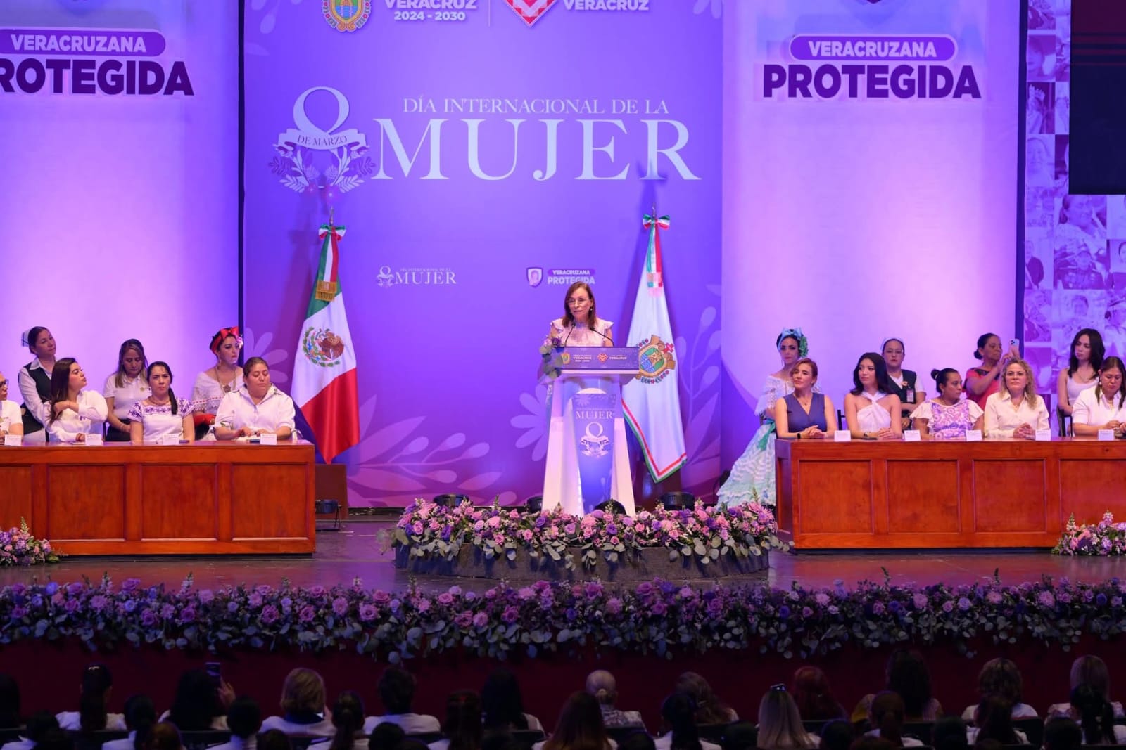 Veracruz, Ver., domingo 08 de marzo de 2026.- En el marco de la conmemoración por el Día Internacional de la Mujer, la gobernadora Rocío Nahle García refrendó que con la atención a más de 2 mil 400 mujeres, el programa Veracruzana Protegida se consolida en el estado.