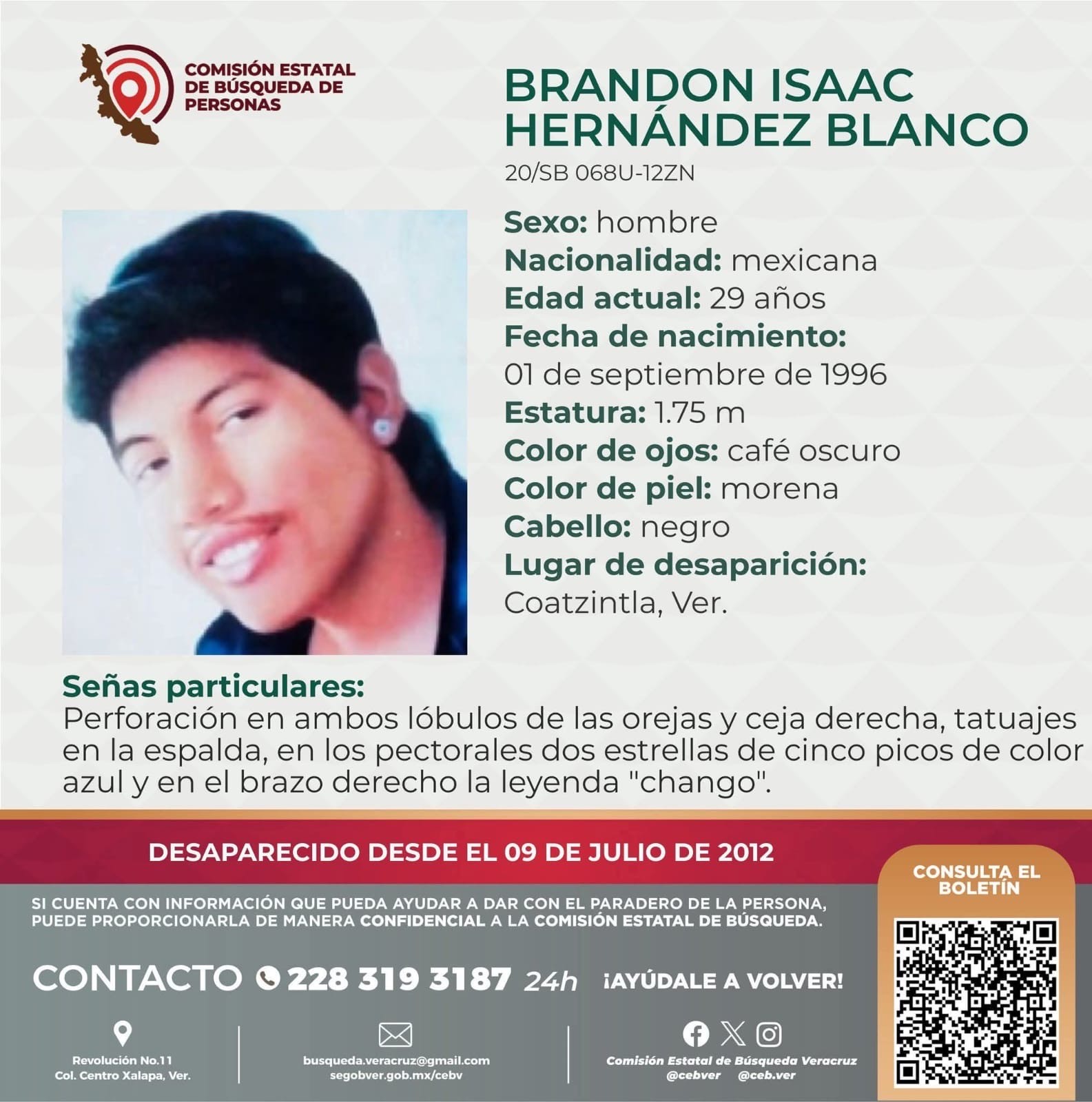 Brandon fue privado de la libertad el 9 de junio de 2012, junto con al menos otros cuatro menores de edad. El terror que imperaba en la región, ubicada en el norte de Veracruz, fue tal que su familia no pudo denunciar de inmediato la desaparición, un patrón que, según activistas, se repitió en cientos de casos.